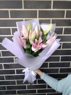 Этот великолепный букет из нежных лилий – настоящий символ чистоты, нежности и элегантности. Его изящные бутоны наполнят пространство нежным ароматом и создадут атмосферу уюта и радости. Каждый цветок в этом букете словно напоминает о красоте и хрупкости природы, заставляя восхищаться ее великолепием. Подарите этот букет своим близким, чтобы подчеркнуть их утонченный вкус.