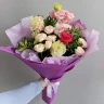 Этот нежный букет "Наслаждение" - воплощение гармонии и изящества природы. Он вобрал в себя прекрасное сочетание микса кустовых и одноголовых роз, разбавленных красивыми эустомами, которые придают композиции неповторимую красоту. Зелень, украшающая букет, добавляет свежесть и живость. Этот букет идеально подойдет для особых случаев, подарив прекрасные моменты и запечатлев красоту природы в единственном экземпляре.