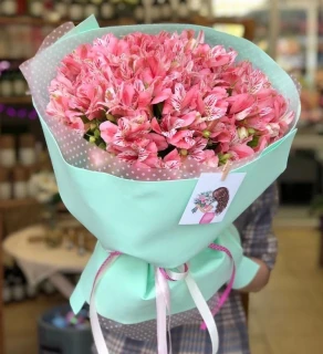 Утонченный и стильный, букет "Жаркий рассвет" впечатлит своей элегантностью. Это исключительно красивые альстромерии, составляющие этот букет. Их изысканная форма и яркие оттенки создают великолепное сочетание цветов и текстур. Это букет, в котором каждая цветочная головка выделяется своей яркостью, привлекая внимание и создавая атмосферу роскоши. Оформленный в элегантную упаковку, он олицетворяет изысканность и шик.